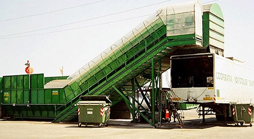 • يتم استخدام محطة تحويل النفايات ذات الشريط الناقل لتعبئة النفايات التي يتم تجميعها داخل المدينة في شاحنات نقل النفايات النصف مقطورة بكل سهولة.