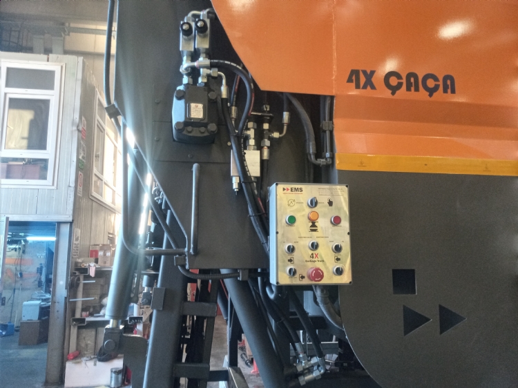 - The automation system of the apparatuses mounted on garbage trucks is provided by electronic panels that can be controlled by joystick.