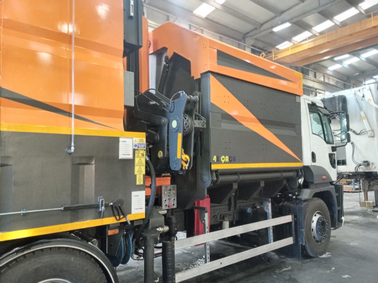 - In the apparatus mounted on the containers, the crane system is used with camera control and the container is automatically placed in its place after it is unloaded to the vehicle.