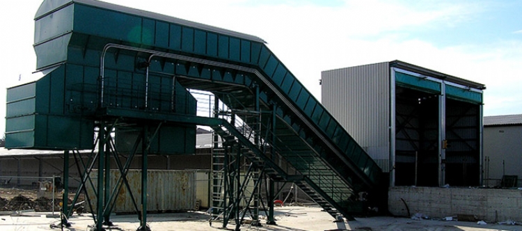 - Conveyor belt waste transfer station is used for loading wastes into waste semi-trailer.